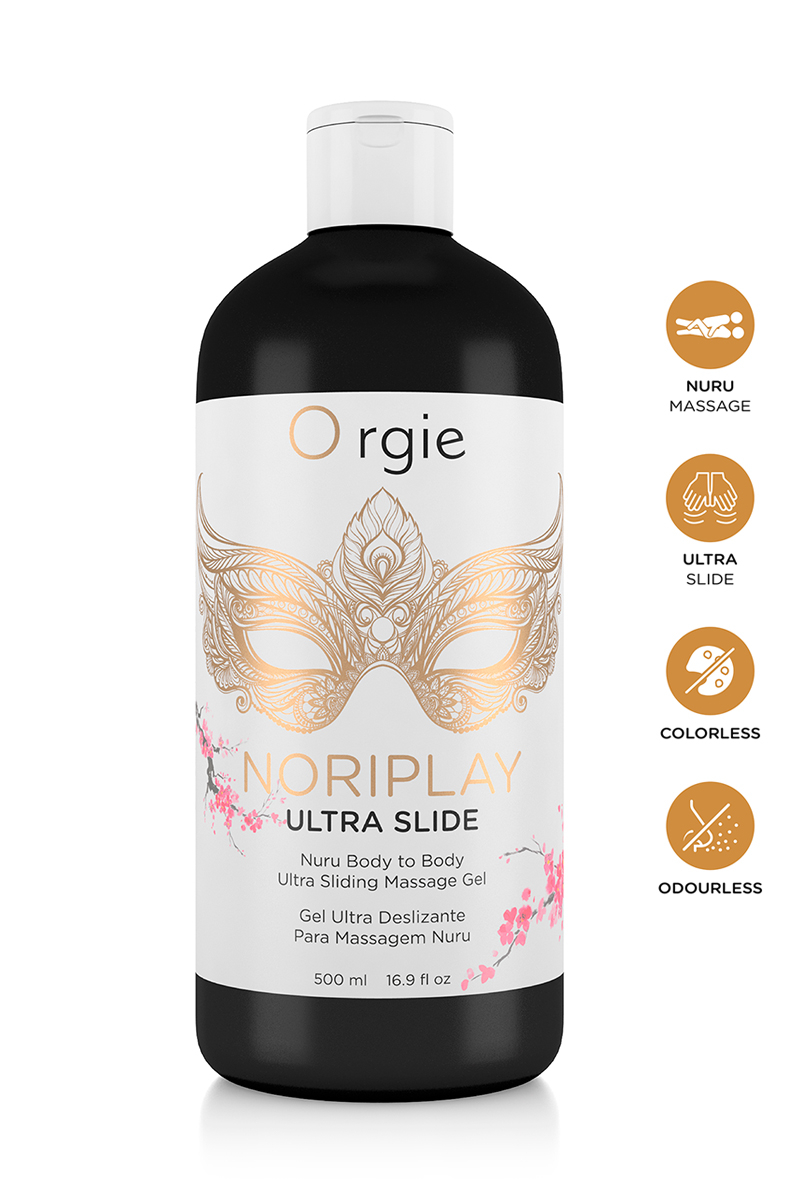 Le gel Noriplay Ultra Slide, formulé à base dextraits dalgues, offre une texture parfaite et un effet de glisse exceptionnel pour réaliser le massage Nuru corps à corps.