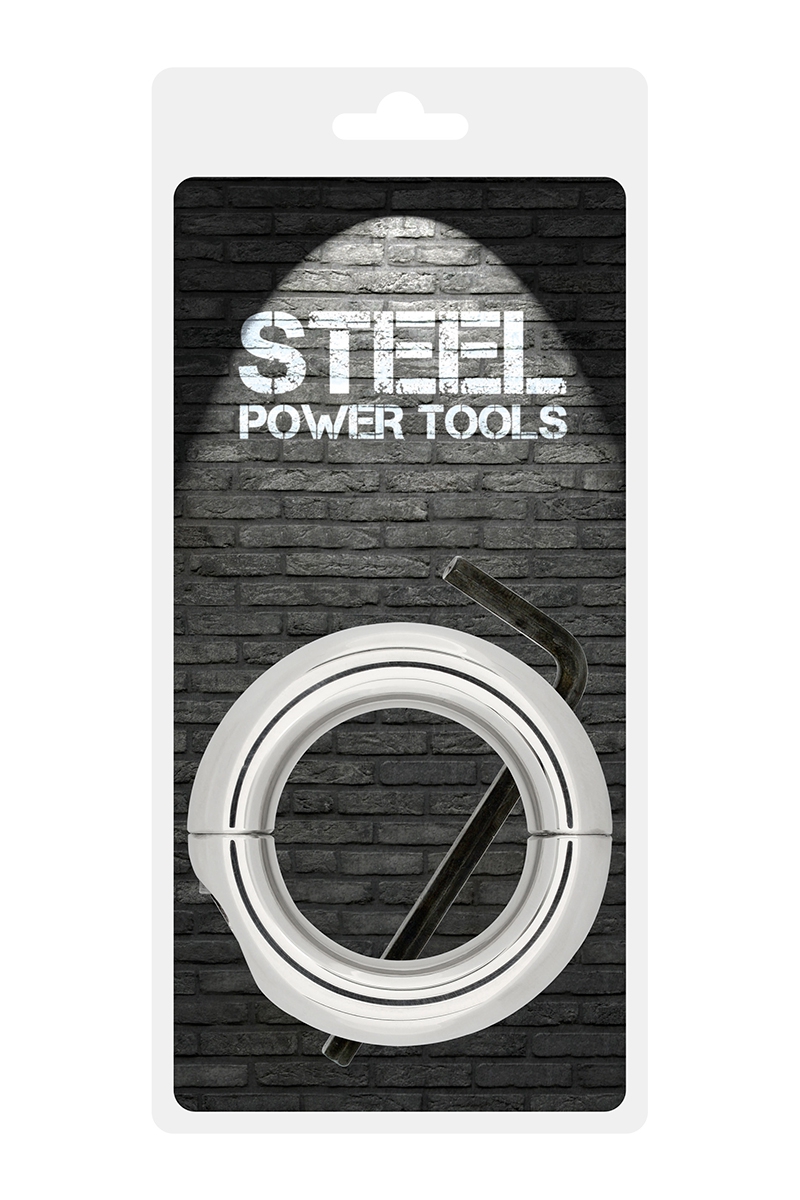 Le ball stretcher Steel Power Tools (taille L ou XL) est un accessoire BDSM pour hommes de grande qualité qui produit une contrainte sur les bourses en les étirant et se verrouille à l'aide d'une clé allen.