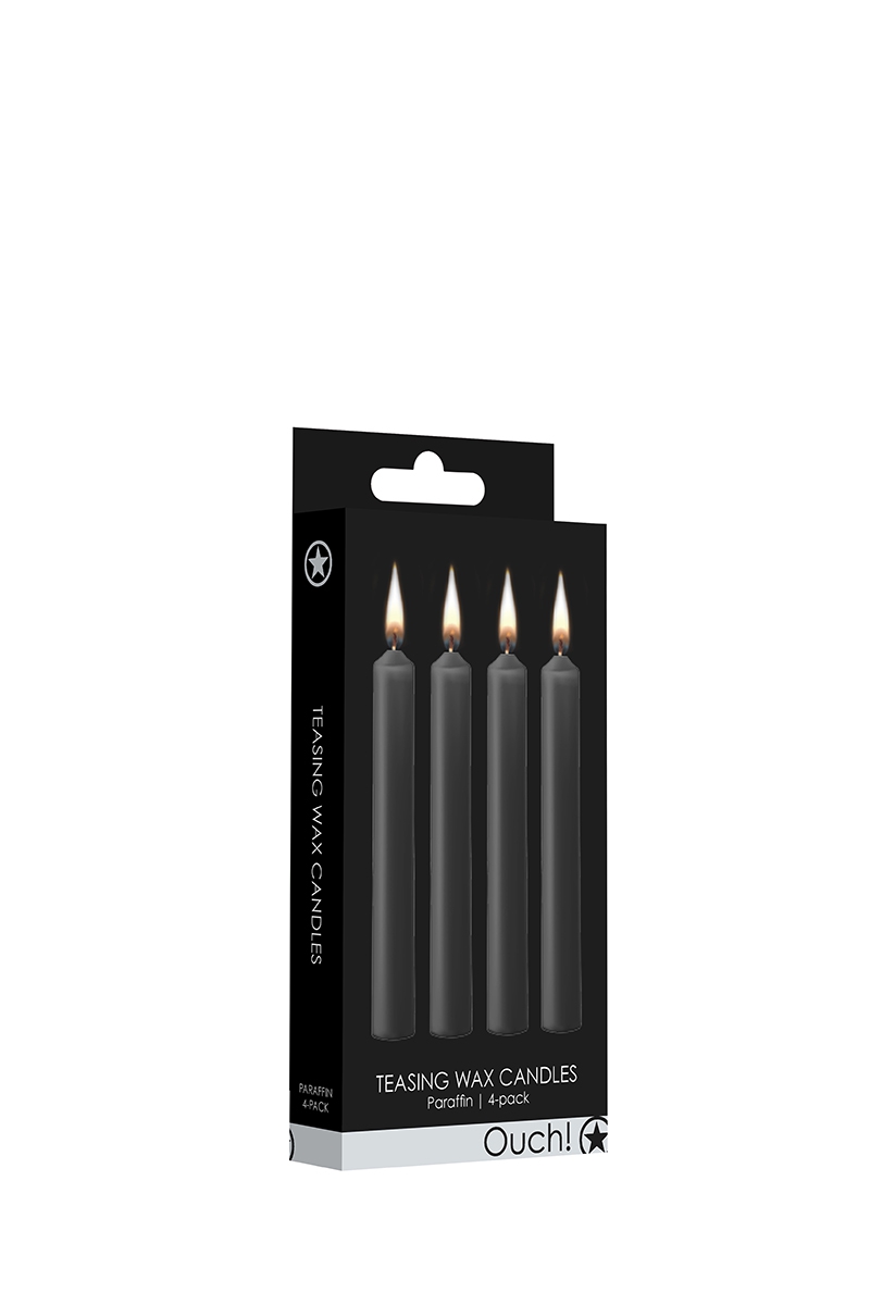 Kit de 4 Bougies Basse Température noires Teasing Wax Candles (12 x 1,7 cm), par le spécialiste du BDSM Ouch!