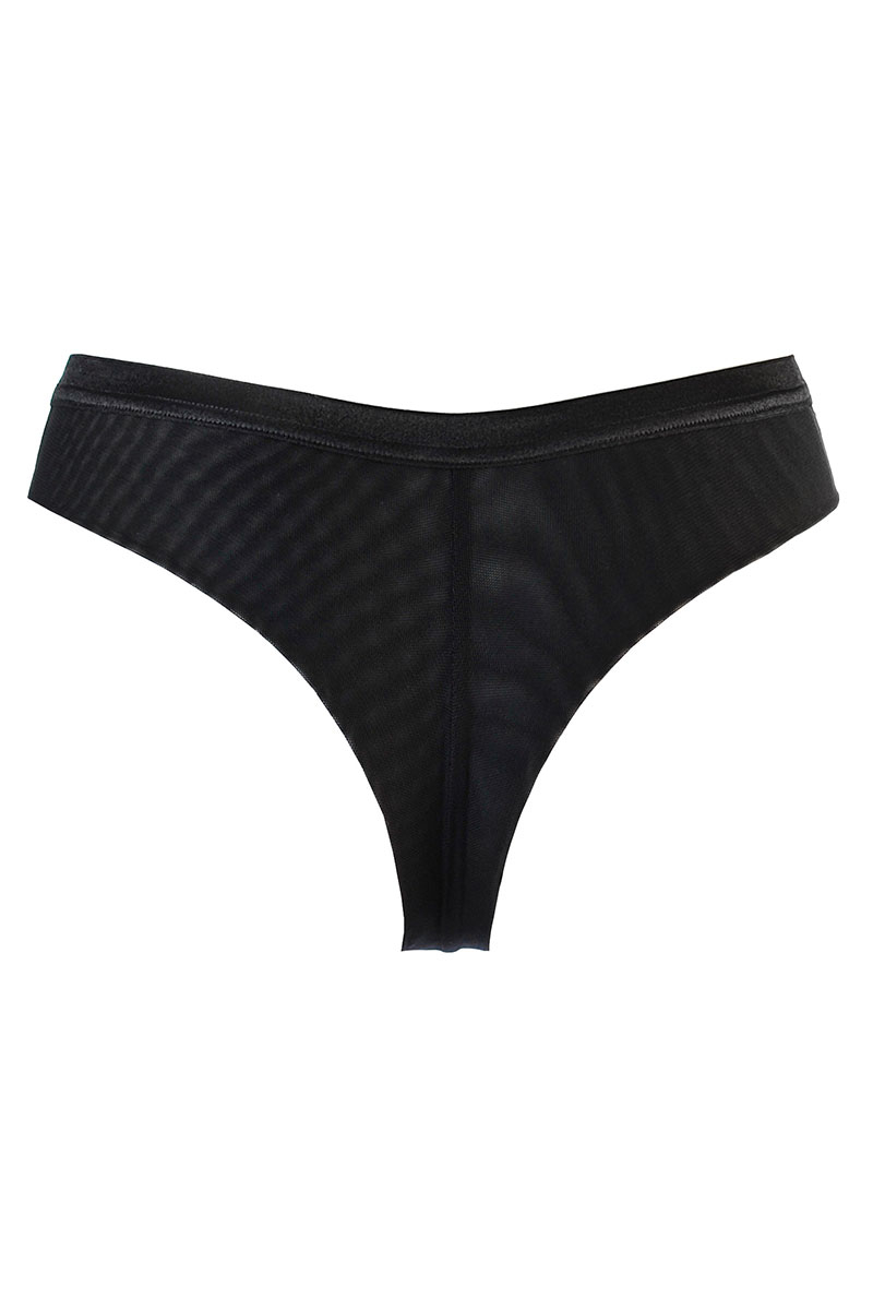 Exploitant parfaitement les deux couleurs de tulle, le string beige coté face, est souligné par la ceinture élastique et la finition en dentelle noire qui couvre le pubis. Coté pile, le tulle noir en double épaisseur servi par une belle coupe échancrée, offre des reflets électriques très attirants.