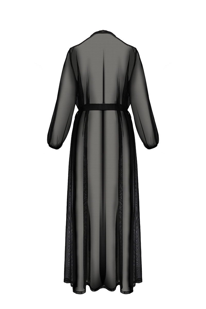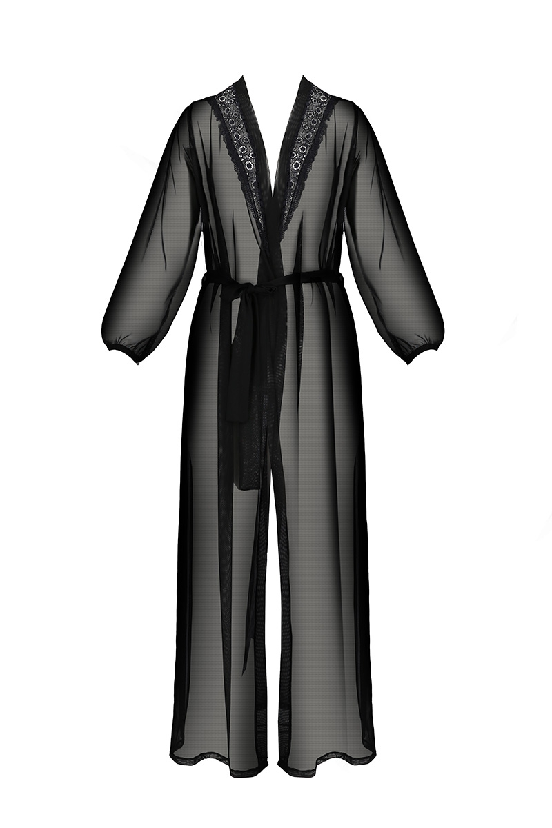 Les manches longues soulignent la finesse des bras et participent à affiner la silhouette. Bordé de dentelle sur le col et le décolleté, le déshabillé raffiné expose vos charmes sous le tulle transparent.