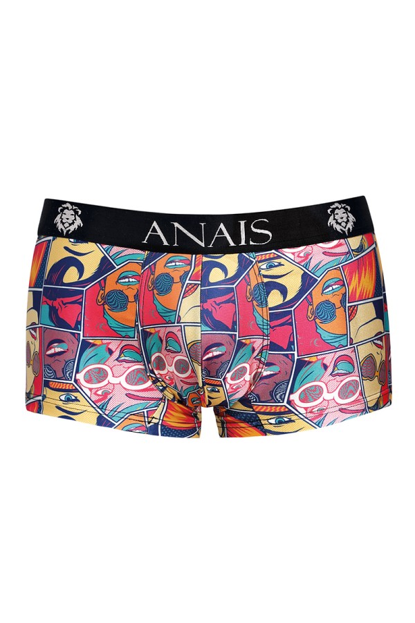 Boxer sexy pour homme fabriqué en tissu imprimé de visages inspirés des comics et du pop art par la marque Anaïs For Men en Europe