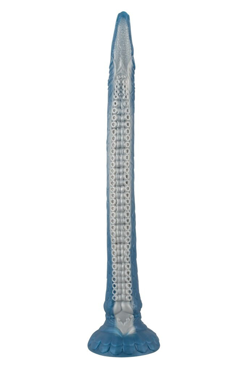 Godemiché extra-long avec ventouse avec design fantaisie qui suggère la tentacule d'un monstre marin ou alien, dimensions 46 x 5,2 cm max.